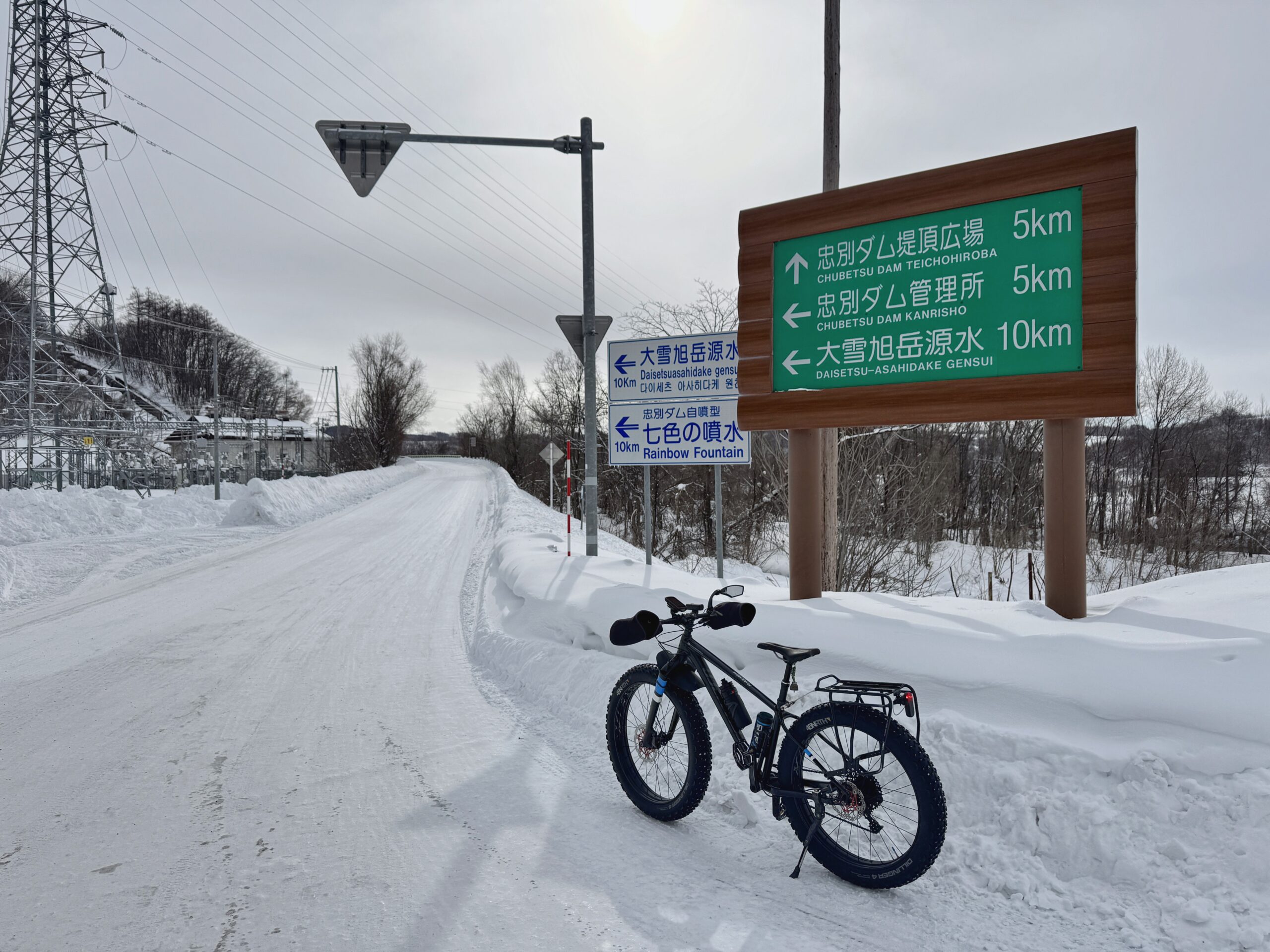 静寂のダム,雪の轍.ファットバイクと過ごす真冬の休日