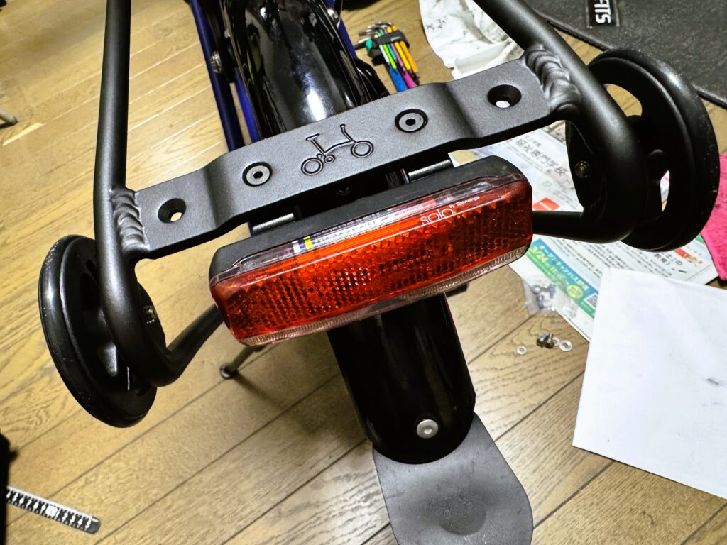 付属の反射板をPPくんの電池式リアライトに変更.