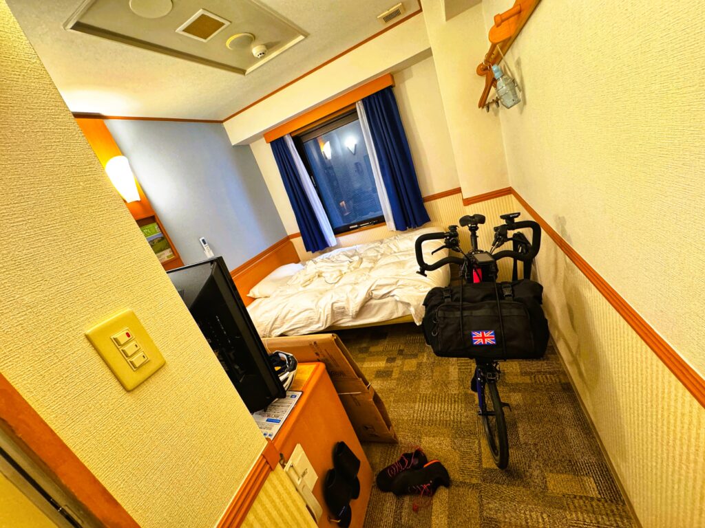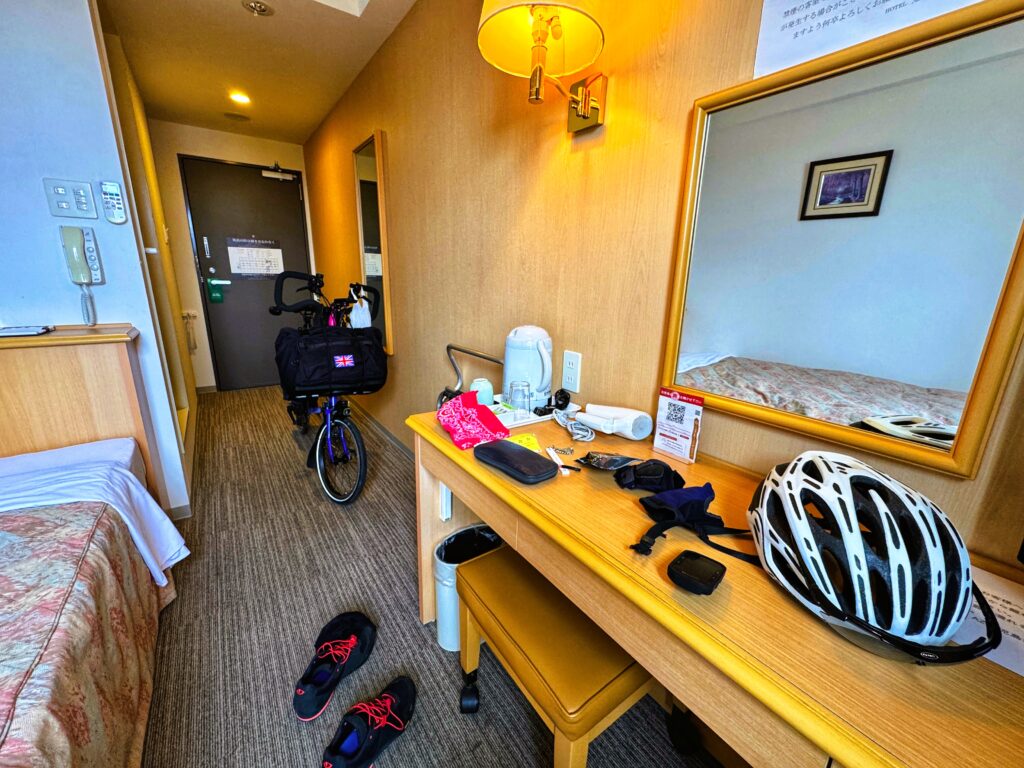 畳んだ段ボールをフロントに預けて,いざ出発.