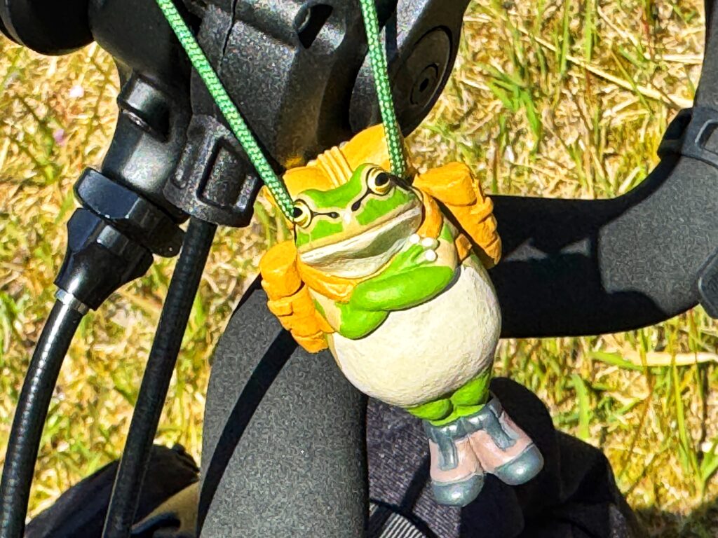 旅のお供はガチャでゲットした『無事カエル』くん.