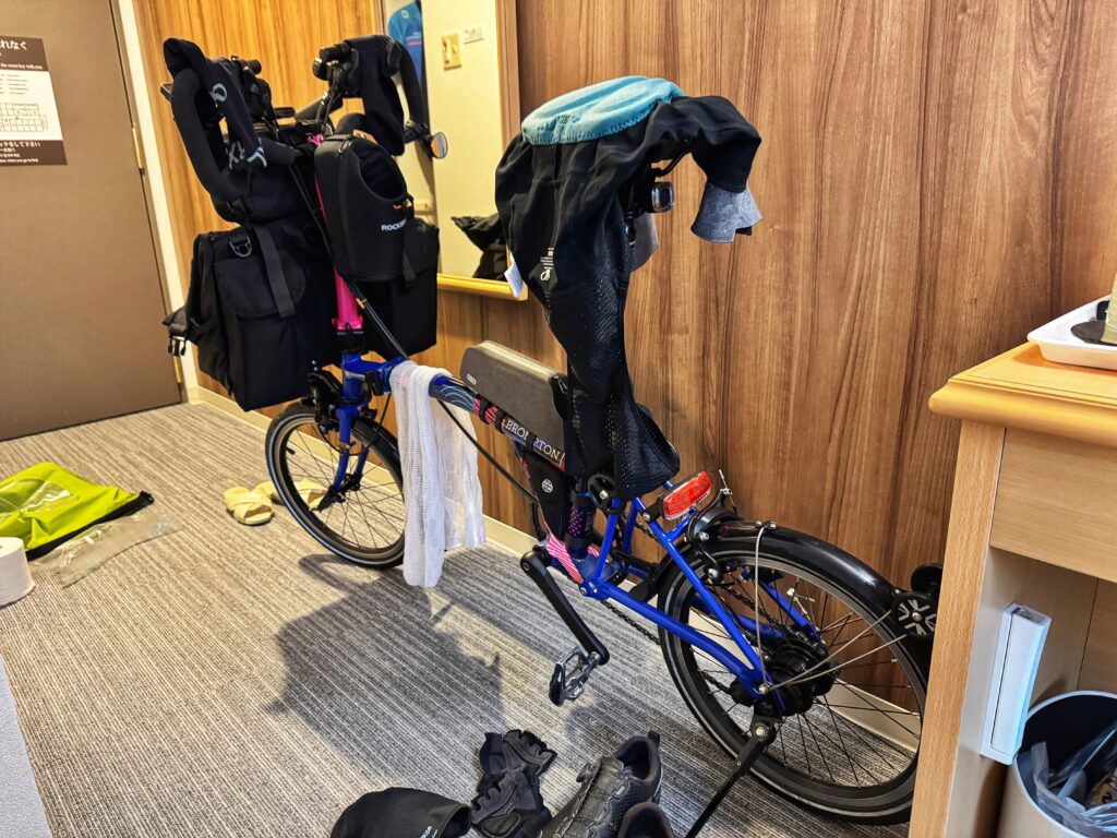 さすがサイクリングウェアである.乾燥機なしでも朝には乾いている.