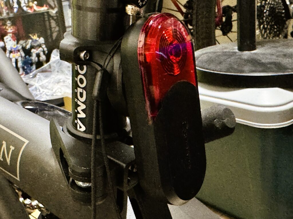 GoProアダプタなので様々なライトを取り付けできるが,とりあえず「PPくん」から外したキャットアイ(AMPP500同等品)を装着.