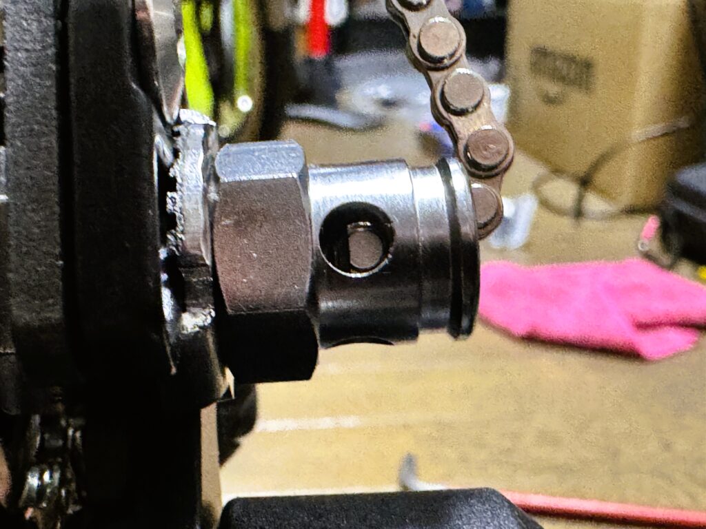 動画の旧式BROと異なり,チェーンテンショナーを外すにはもう一ヵ所ボルトを緩める必要があった.