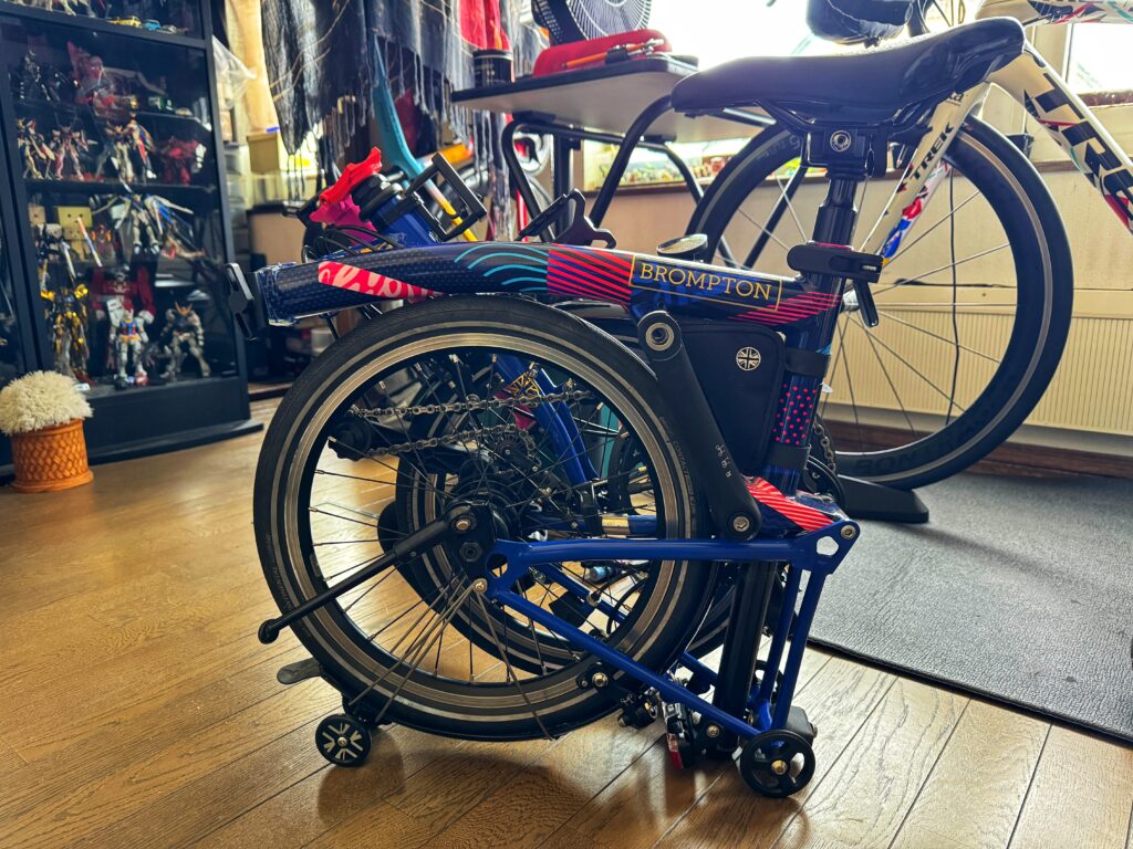 夜露を避けて,チャリは室内にて保管.