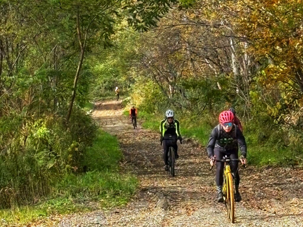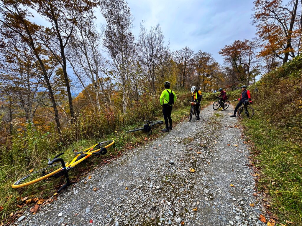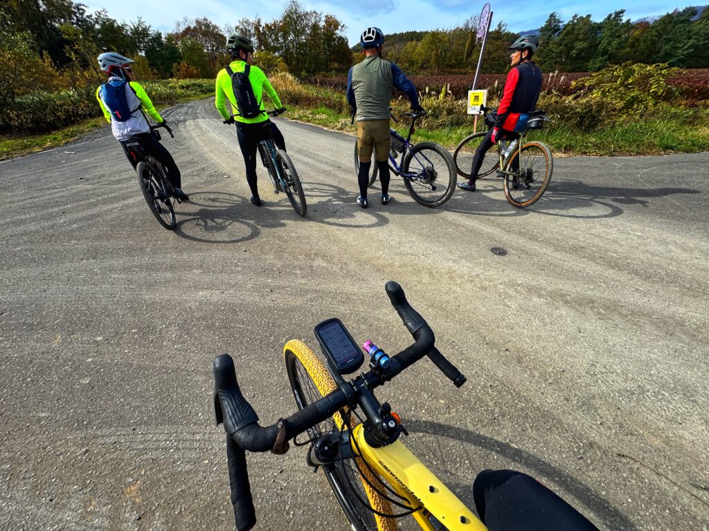二人だけで山奥を走るのはキケンと,Jさんが地元や札幌のグラベルライド仲間に声をかけた.